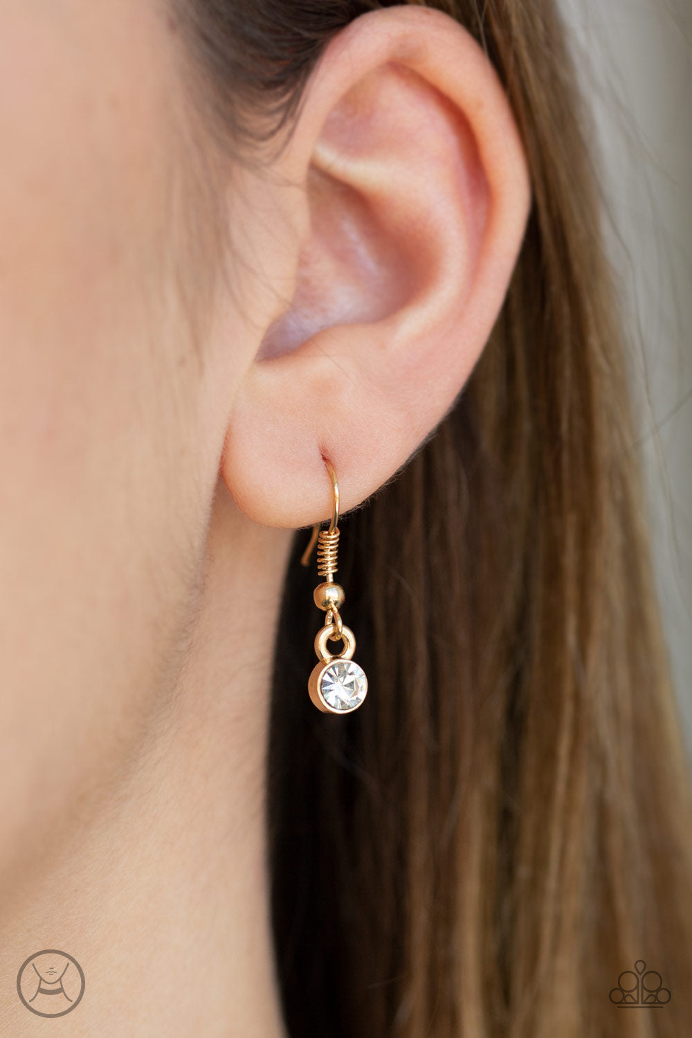 Glassy white rhinestones dot a dainty gold chain around the neck for a stunning look. Features an adjustable clasp closure.