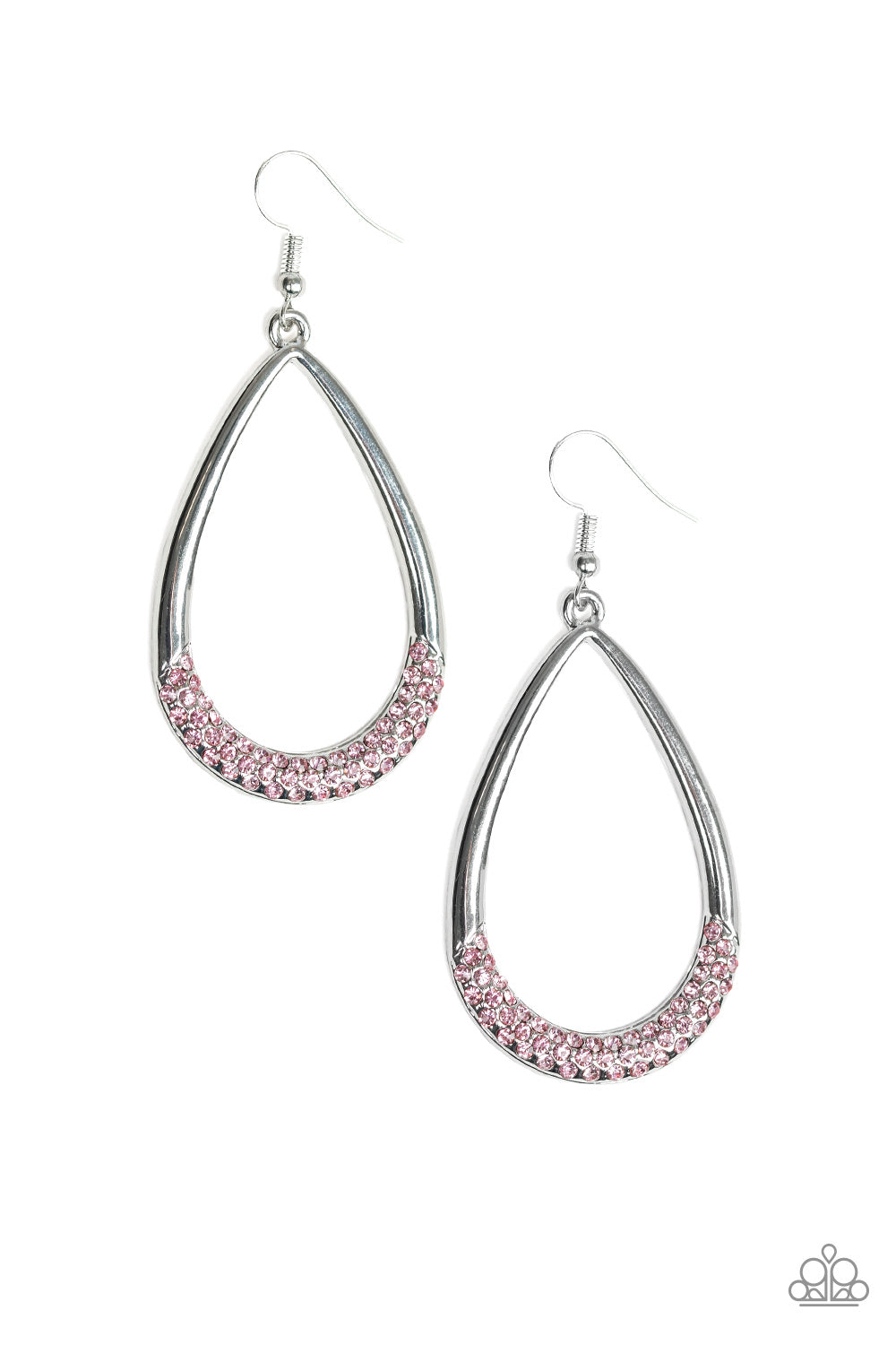 As if dipped in glitter, the bottom of a glistening teardrop rhinestone is encrusted in rows of glassy pink rhinestones for a refined flair. Earring attaches to a standard fishhook fitting.